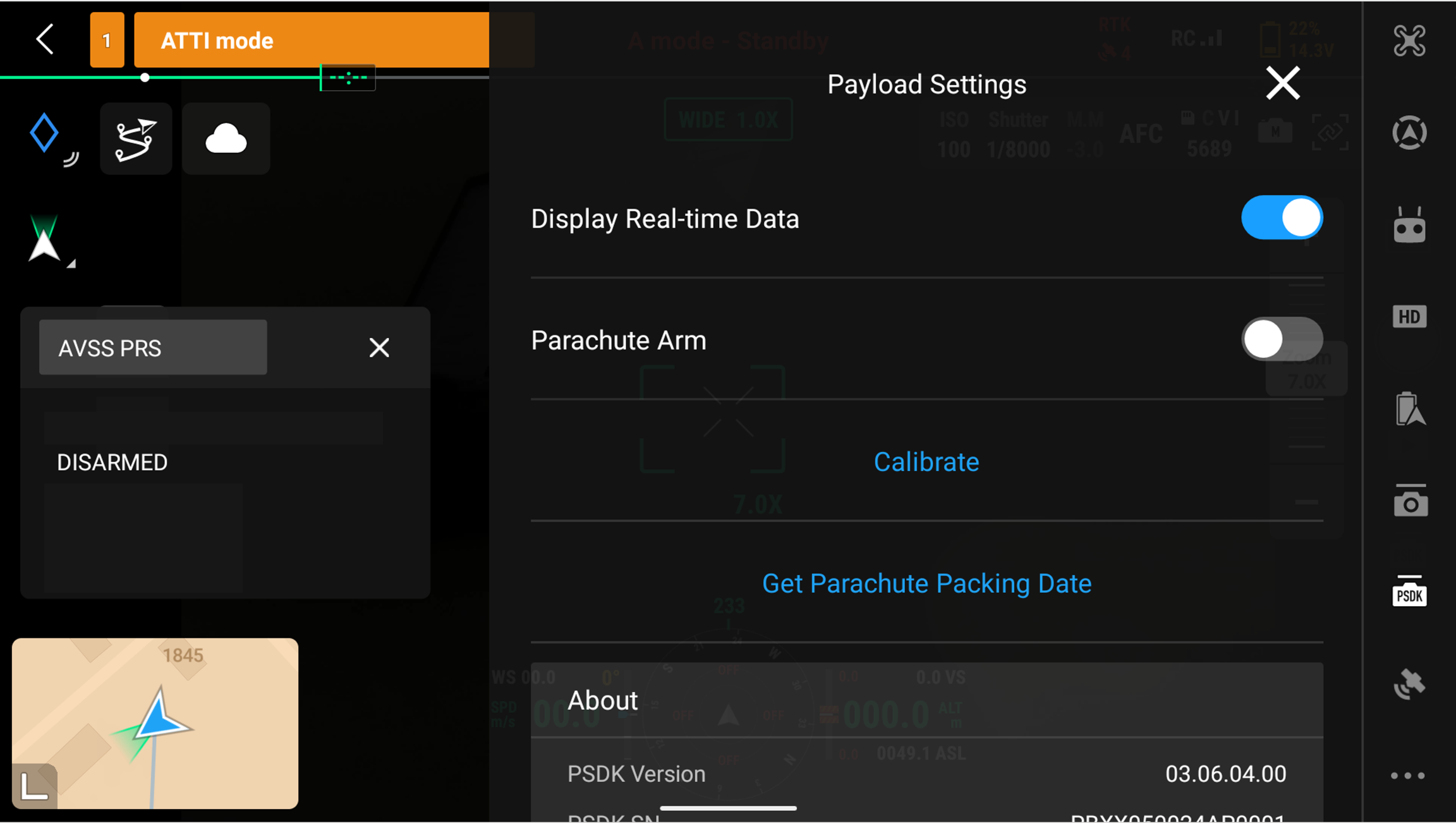 Note: if the PSDK interface is not displayed on the Drone Transmitter, the PRS is not connected. Please check the installation instructions.