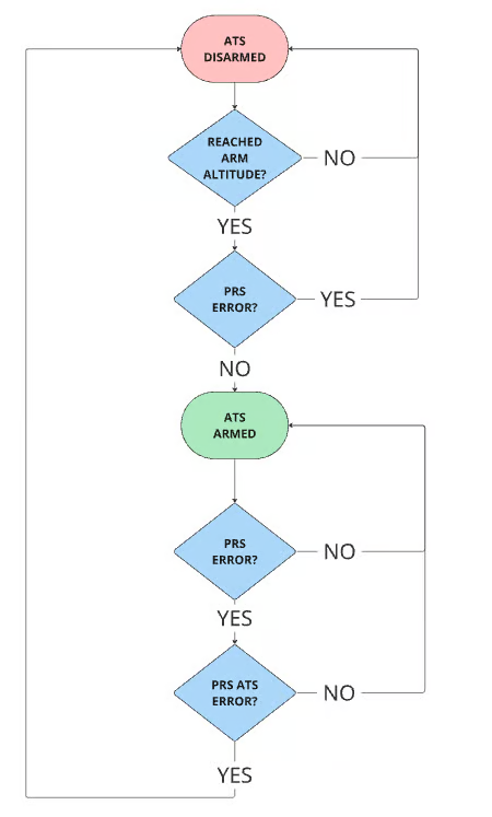 IF ANY WARNINGS ARE PRESENT, THE PRS WILL NOT ARM. ALWAYS ENSURE THAT ALL WARNINGS DISAPPEAR BEFORE TAKEOFF. NOTE: IF THE PRS IS ARMED AND AN ERROR OCCURS, THE PRS WILL REMAIN ARMED. IF THE ATS HAS AN ERROR, THE ATS WILL DISARM, BUT THE MTD WILL REMAIN ARMED. CHECK THE ARM STATUS OF THE PRS TO VERIFY WHICH FUNCTIONS ARE ARMED. SEE PRS ARMING FLOW DIAGRAM BELOW.