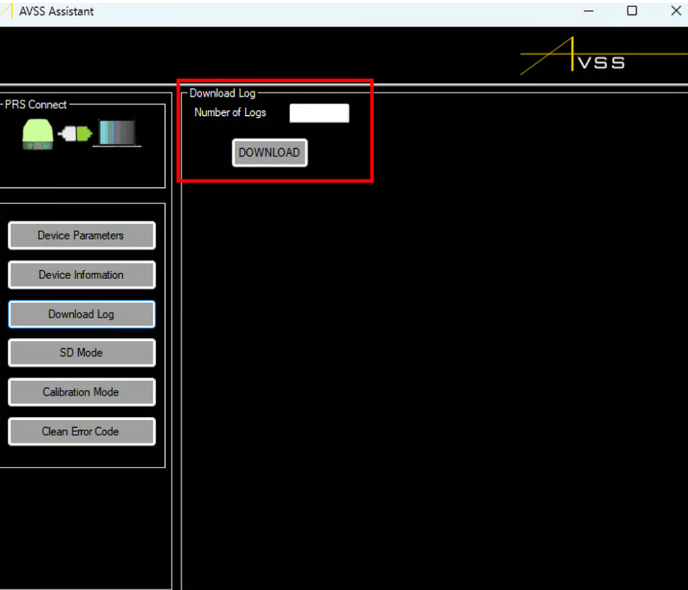 AVSS Assistant also contains a function to download flight logs to a local computer. To initiate this process, click on the “Download Log” button. A new box “Download Log” will appear. In the “Number of Logs” box type the number of the most recent logs that are to be downloaded and click on the “DOWNLOAD” button. The download will always start from the most recent log and work backward.